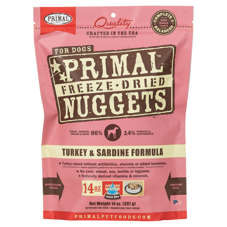 [잡화ZOO] 프라이멀 케이나인 동결건조 너겟 터키&사르딘(정어리) 포뮬라 강아지 동결건조사료 397g