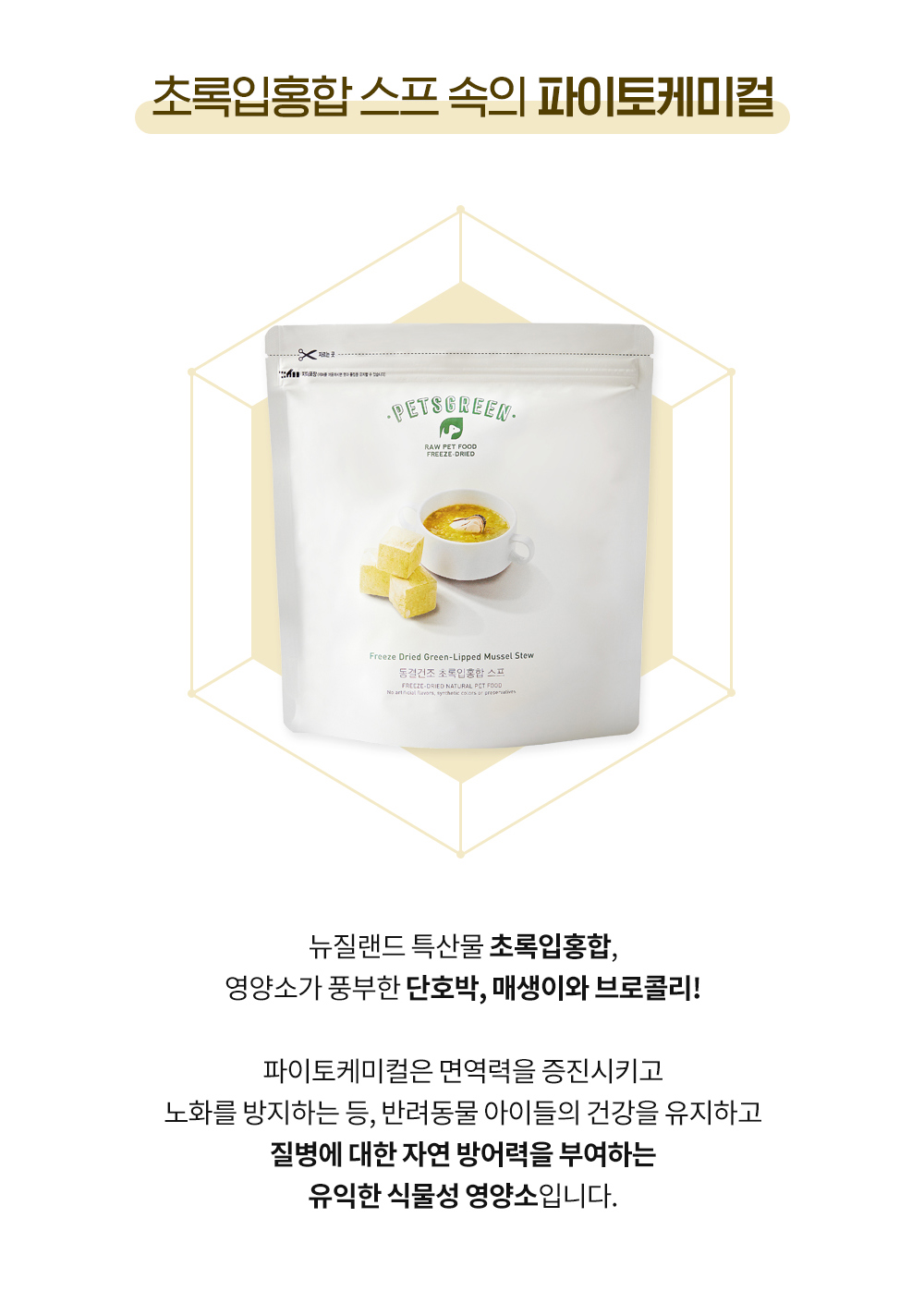 펫츠그린 동결건조 초록입홍합 스프 70g (초록입홍합, 단호박, 브로콜리, 매생이)